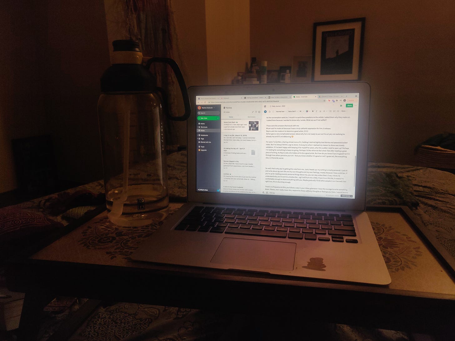 I've been writing for years, sharing almost none of it, holding it behind tightly tied diaries and password locked Notes. It seemed almost impossible to let other eyes glance upon it, but at the same time, I craved recognition. It stung me, deeply, when I realised my reason to share what I wrote was mostly to gain validation. I questioned myself. I questioned whether my art was of value. If I was merely writing for a reaction, for acknowledgement, for a "hey, that's well written". But I guess I've made my peace with it. I. Perhaps I'm looking for something to keep me going. Perhaps I'd like others to feel what I feel after I read a great piece of writing. As Rayna said, she makes art to be a good artist. But how do you know if you're good? Isn't it through how others perceive your art?